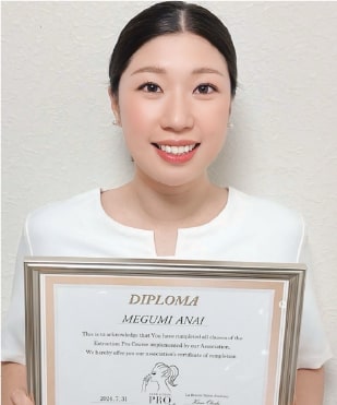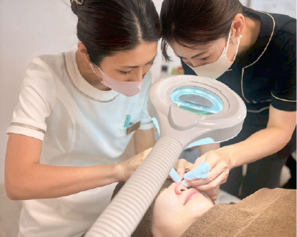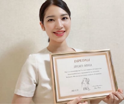 実際に受講すると、リアルでしか学べないことがたくさんありました。技術合格後、オープンに向けて必要なことを一人で準備するのは不安でしたが、「皮膚理論」や「インスタ集客」などの動画特典が本当に役に立ちました。サロンをオープンして3ヶ月ほどたつと、また新たな課題も出てきますが、アフターフォロー会で技術の見直しや不安な点を確認でき、無期限で講師の先生方のサポートが受けられること、全国に仲間ができて励まし合えることが、私にとって大きな支えになっています。