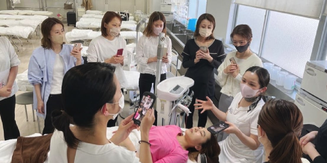 開催地によりますが、講師の実際のサロンで講習を受けられる場合もございますので、その際はリアルな小さなエステサロンを体験していただけるのもこれから開業するにあたって参考になると思います!