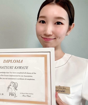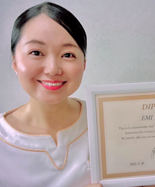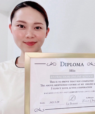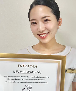 エステサロンを2店舗経験する中で、女性も男性も共に毛穴に悩んでいる方が多く、様々な機械を使用しましたが、毛穴汚れは全て取り除くことが出来ずにモヤモヤとしていました。そんな時、この技術・施術に出会いました!この技術でお悩みを解消し、癒しのお時間もご提供したい!その思いで毎日勉強し合格することが出来ました。